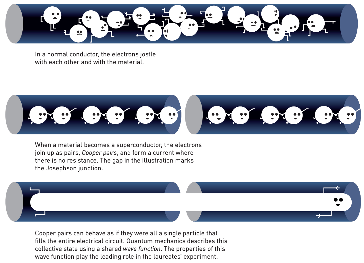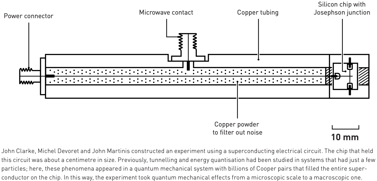 The laureates proved that even in the world of classical physics, quantum effects can be observed. Their experiments demonstrated both 1) quantum tunnelling and 2) quantised energy levels in a system large enough to be held in the hand.